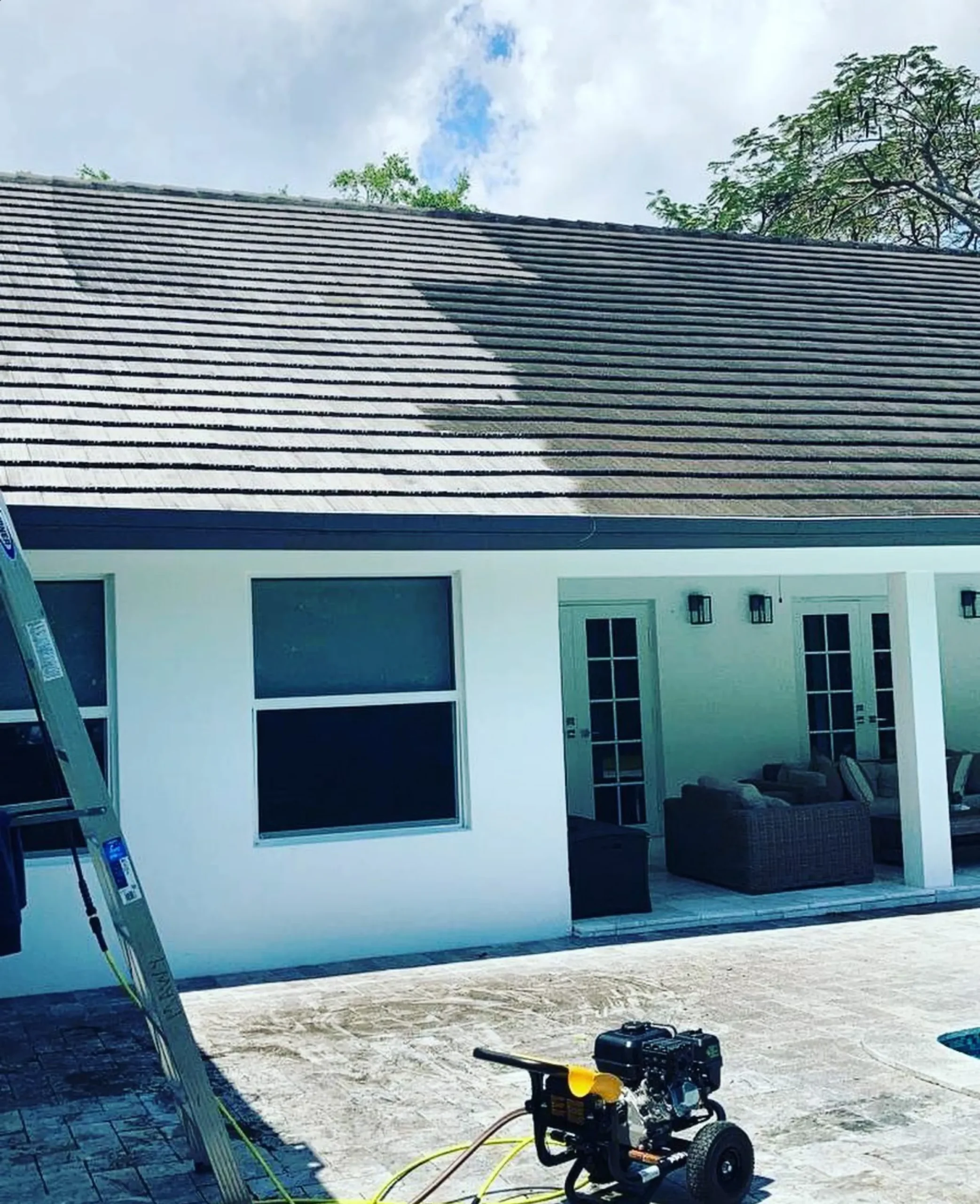 Method: Uses low water pressure and a safe chemical mixture (often sodium hypochlorite diluted properly) to break down moss growth and tough stains